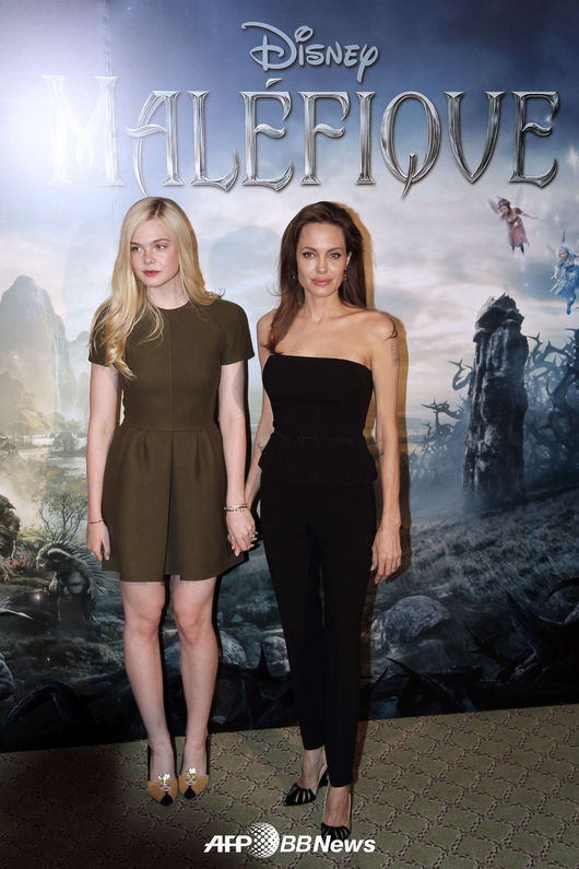 배우 엘르 패닝, 안젤리나 졸리가 참석해 포즈를 취하고 있다.