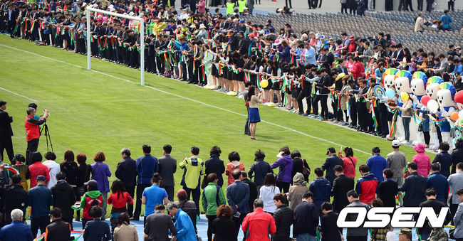 송영길 인천시장 및 주요 내빈들과 시민 2014명이 참가하는 테이프커팅 퍼포먼스가 진행됐다.