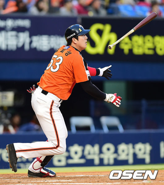 김회성은 2-2 동점을 이루고 있던 2회초 1사 1루서 타석에 들어서 LG 선발투수 신재웅의 패스트볼에 우중간 담정을 넘기는 홈런을 기록했다.