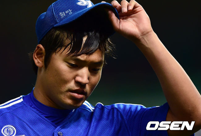 삼성 백정현이 4회말 수비를 마치고 더그아웃으로 들어오고 있다.