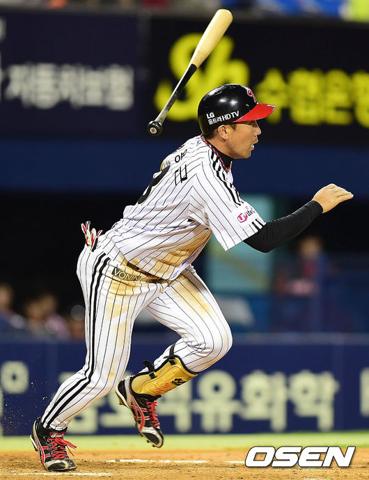 4회말 LG 공격 무사 1루 상황 박용근이 중전안타를 날리고 있다.