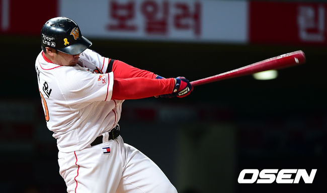 6회말 무사 SK 이재원이 솔로 홈런을 때리고 있다.