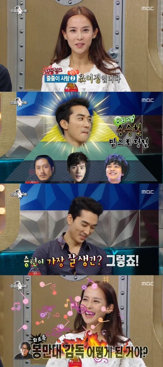 조여정은 7일 오후 방송된 MBC 예능프로그램 '황금어장-라디오스타'(이하 '라스')에서 "지금까지 상대 배우들 중 가장 잘생기지 않았느냐"는 질문에 대해 "그렇다"라고 답했다.