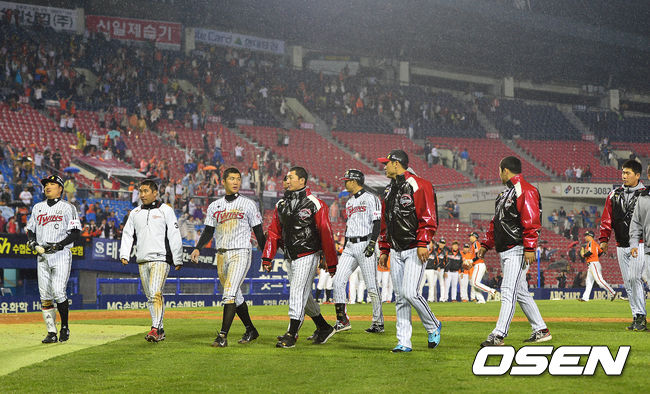 LG 선수들이 팬들에게 인사한 뒤 그라운드를 나서고 있다./dreamer@osen.co.kr