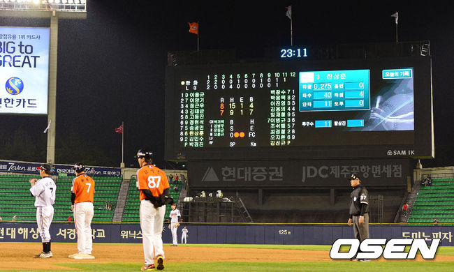 사진은 연장 11회초 한화 공격 2사 1루 상황의 전광판 모습./dreamer@osen.co.kr