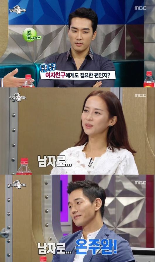 그러나 이후 MC들이 두 사람을 비교하는 질문을 던지자 "남자로는 온주완이 좋다"라고 답해 송승헌을 씁쓸하게 만들었다.