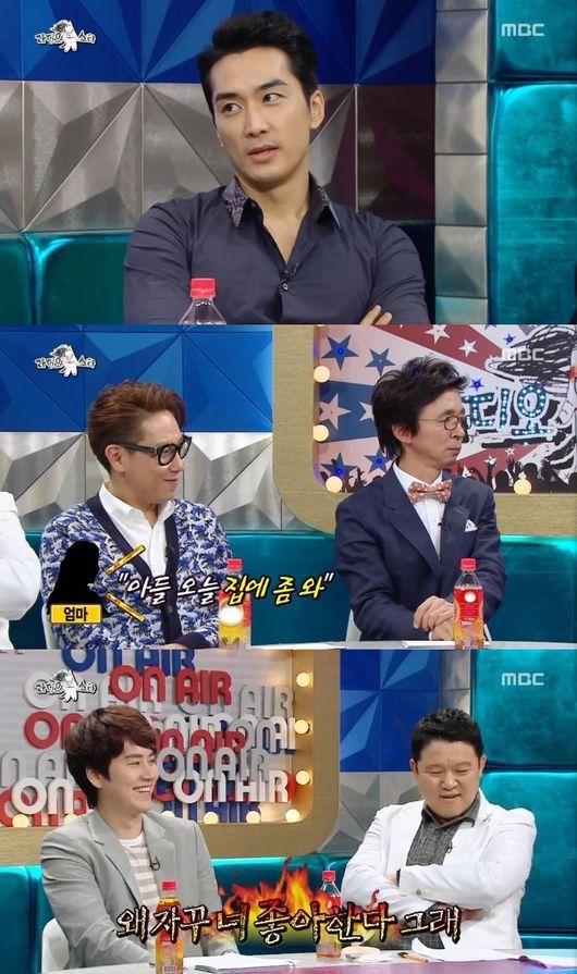 송승헌은 7일 오후 방송된 MBC 예능프로그램 '황금어장-라디오스타'(이하 '라스')에서 MC들로부터 "홍석천이 방송에서 이상형이 송승헌이라 했다"는 말에 "그 뒤에 어머니가 전화를 하셔서 '아들 집에 좀 와'라고 하셨다"라고 말했다.