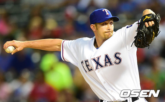 8일(이하 한국시각) 미국 텍사스주 알링턴 글로브 라이프 파크에서 열린 '2014 메이저리그' 텍사스 레인저스와 콜로라도 로키스의 경기, 텍사스 스캇 베이커가 역투하고 있다.