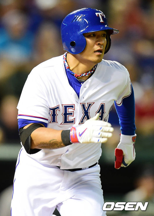 8일(이하 한국시각) 미국 텍사스주 알링턴 글로브 라이프 파크에서 열린 '2014 메이저리그' 텍사스 레인저스와 콜로라도 로키스의 경기 6회말 선두타자 추신수가 내야땅볼을 치고 달리고 있다.