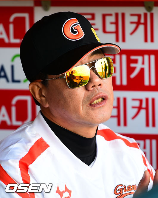 8일 오후 부산 사직구장에서 열린 '2014 한국야쿠르트 세븐 프로야구' 롯데 자이언츠와 두산 베어스의 경기에 앞서 롯데 김시진 감독이 취재기자들과 이야기를 나누고 있다.