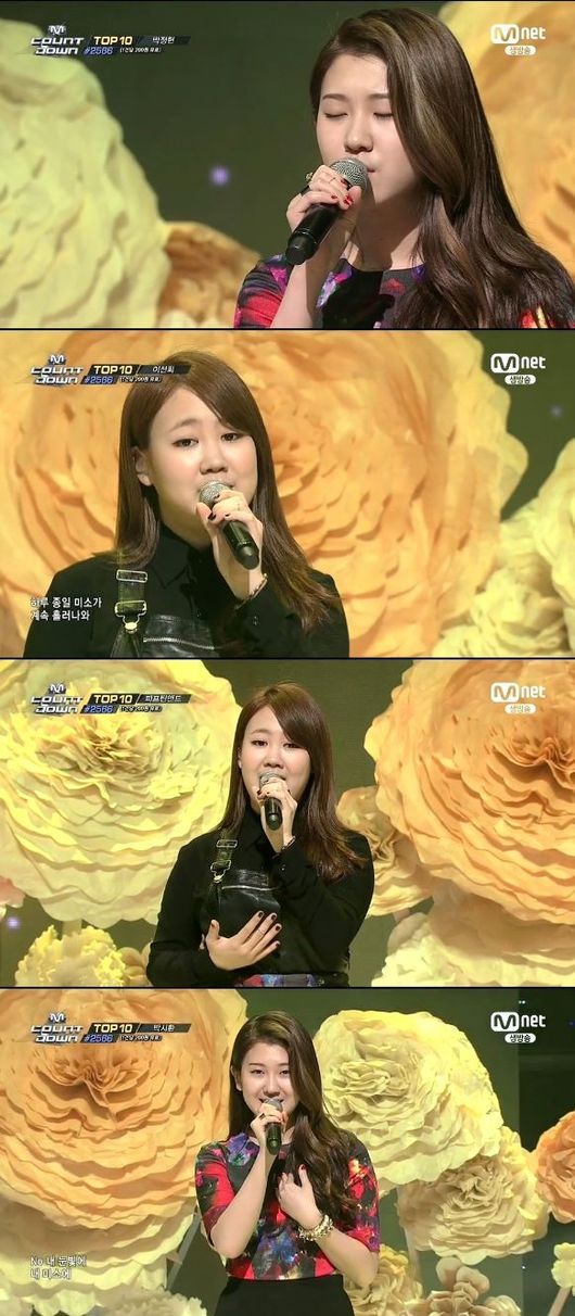 한편 이날 '엠카운트다운'에는 엑소, 악동뮤지션, 박정현, 에이핑크, 15&, 매드클라운, NS윤지, 에디킴, 박시환, 홍대광, 메이퀸, 에릭남, 손승연, 메이퀸 등이 출연해 화려한 무대를 꾸몄다.