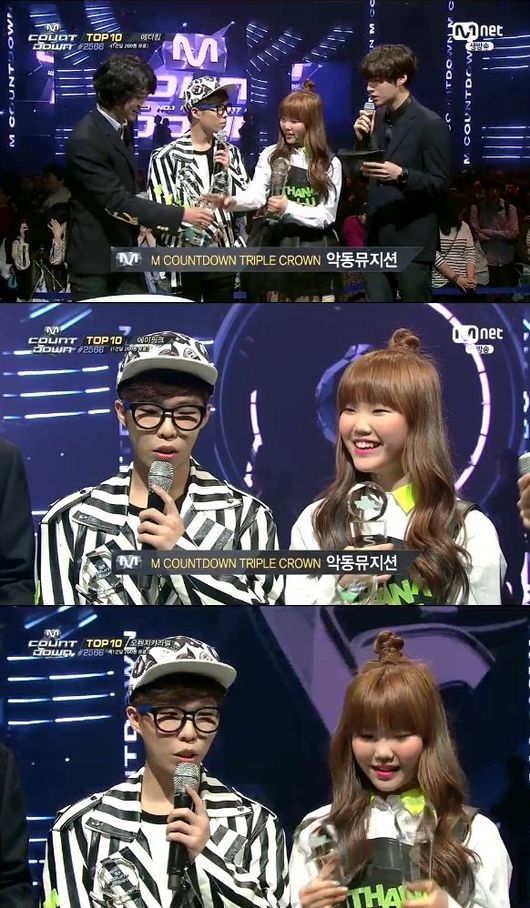 남매 듀오 악동뮤지션이 '엠카운트다운'에서 트리플 크라운을 달성한 것에 대해 "우리 노래가 지난 3주간 많은 사람들에게 힘이 됐으면 좋겠다"고 소감을 밝혔다.