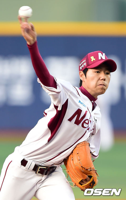 8일 오후 서울 목동구장에서 열린 ‘2014 한국야쿠르트 세븐 프로야구’ 넥센 히어로즈와 NC 다이노스의 경기, 넥센 선발 하영민이 힘차게 공을 뿌리고 있다.