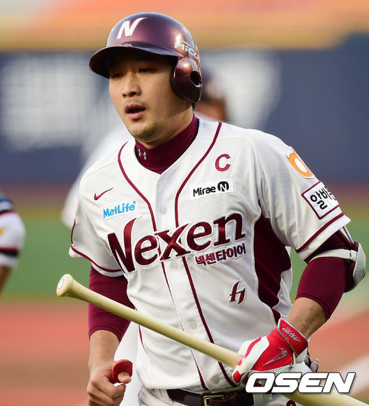 8일 오후 서울 목동구장에서 열린 ‘2014 한국야쿠르트 세븐 프로야구’ 넥센 히어로즈와 NC 다이노스의 경기, 1회말 2사 주자 없는 상황에서 넥센 이택근이 좌월 선취 홈런을 날린 후 홈을 밟고 있다.