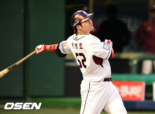 8일 오후 서울 목동구장에서 열린 ‘2014 한국야쿠르트 세븐 프로야구’ 넥센 히어로즈와 NC 다이노스의 경기, 3회말 1사 주자 1,3루 넥센 박병호가 우익수 희생플라이로 1타점을 올리고 있다.
