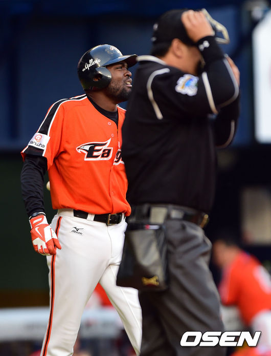 8일 오후 서울 잠실구장에서 열린 '2014 한국야쿠르트 세븐 프로야구' LG 트윈스와 한화 이글스의 경기, 1회초 한화 피에가 타석에 들어서고 있다. 피에는 전날 경기에서 판정불만 퇴장조치를 받은바 있다.