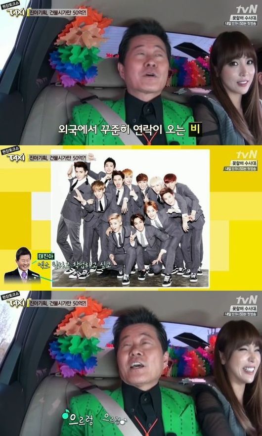 태진아는 8일 오후 방송된 tvN 예능프로그램 '택시'에서 "후배들 중에 같이 작업하고픈 가수가 있나"는 MC 김구라의 말에 '엑소와 하고 싶다. 멤버 찬열과도"라고 말했다.