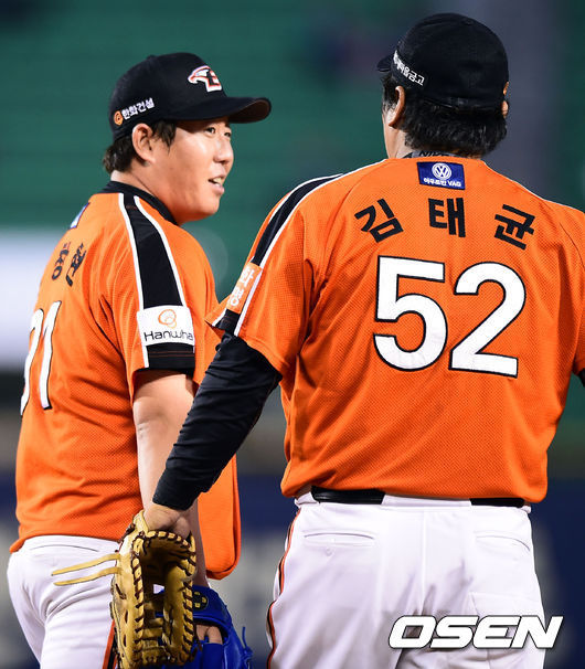 4회와 5회는 수비 도움도 받았다. 송창현은 4회말 첫 타자 정의윤에게 내야안타를 맞았지만 1루수 김태균이 호수비로 3-6-3 더블플레이, 5회말에도 오지환에 타구에 3-6-3 더블플레이를 만들어냈다.
