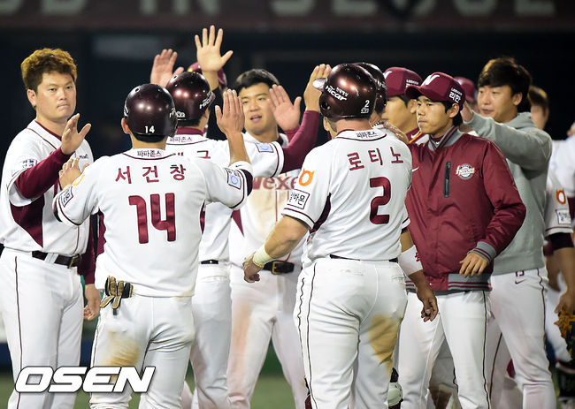경기를 마치고 넥센 이택근이 동료들과 하이파이브를 하고 있다. / rumi@osen.co.kr
