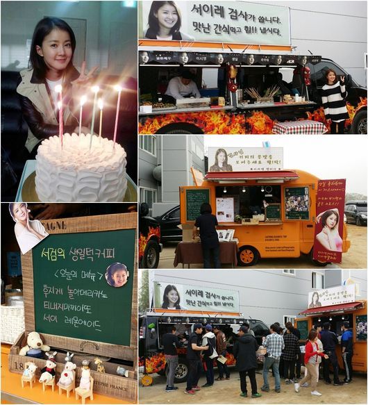 KBS '골든크로스'에 출연 중인 배우 이시영이 생일을 맞아 팬들로부터 간식차 선물을 받았다.