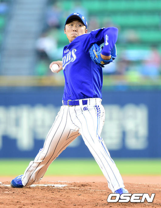 1회말 무사에서 삼성 선발투수 배영수가 힘차게 공을 던지고 있다.