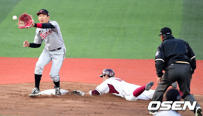 1회말 무사 1루에서 넥센 서건창이 2루 도루에 성공하고 있다.