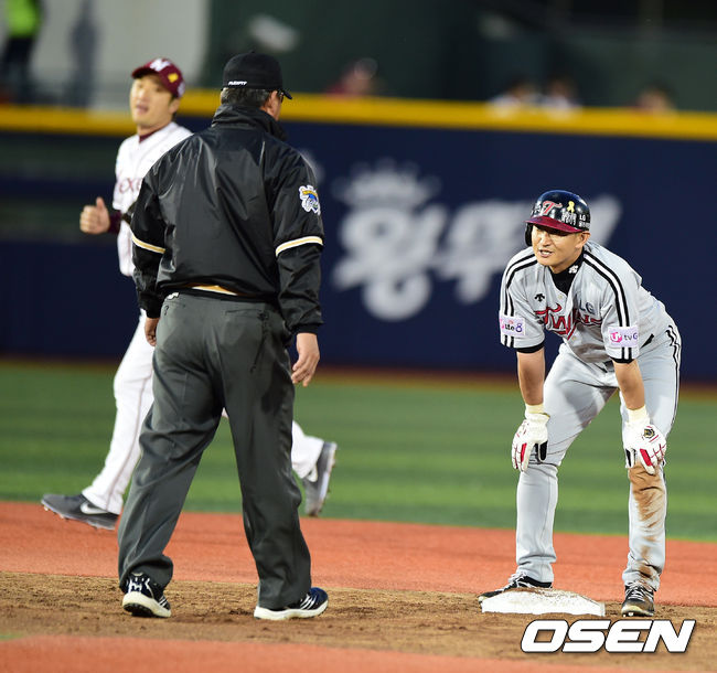 3회초 2사 1,2루에서 LG 박용택이 2루 도루에 실패하며 아쉬워하고 있다.
