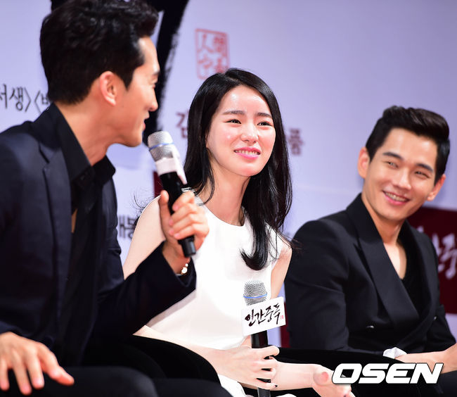 배우 송승헌, 임지연, 온주완이 사회자의 질문에 답하고 있다.