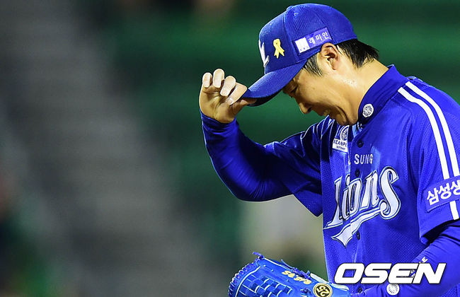 4회말 2사 1,2루에서 두산 김재호에게 중전 적시타를 허용한 삼성 배영수가 아쉬운 표정을 짓고 있다.