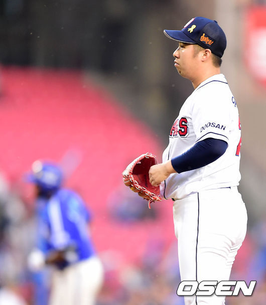 리그 평균자책점 1위(1.91)였던 유희관(28, 두산 베어스)이 난타당하며 시즌 첫 패배를 당할 위기에 처했다.