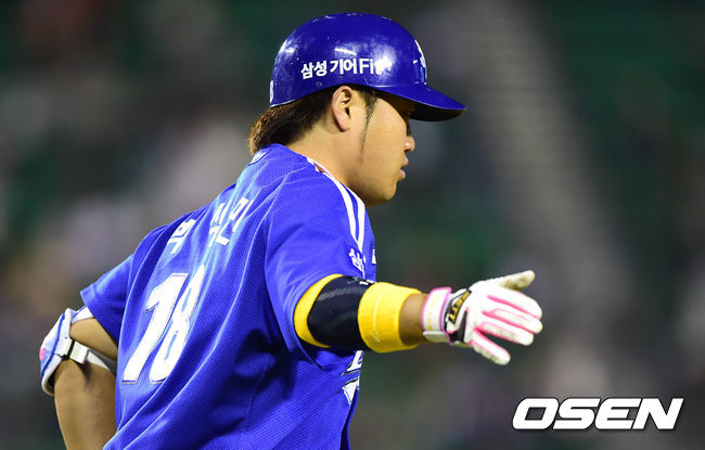 5회초 2사 1루에서 삼성 박석민이 좌월 투런 홈런을 날리고 그라운드를 돌고 있다.