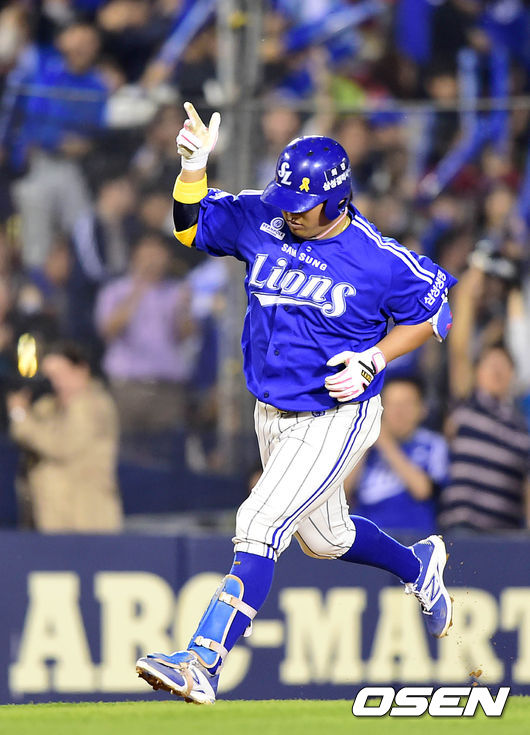 5회초 2사 1루에서 삼성 박석민이 좌월 투런 홈런을 날리고 그라운드를 돌고 있다.