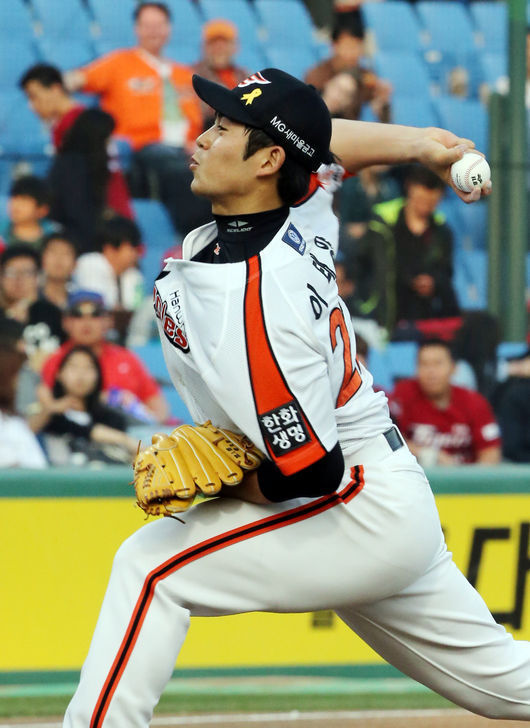한화 우완 유망주 이태양(23)이 데뷔 후 최고의 피칭으로 첫 승을 눈앞에 두고 있다.