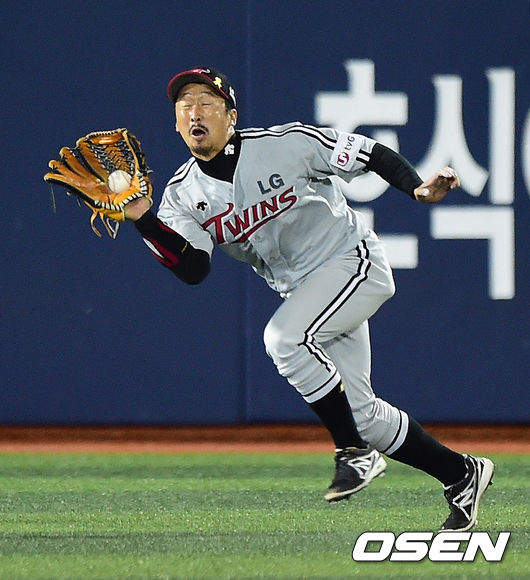7회말 무사에서 LG 이병규가 넥센 문우람의 좌익수 플라이 타구를 잡아내고 있다.