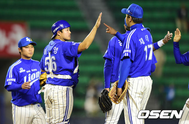 경기 종료 후 삼성 선수들이 승리의 기쁨을 나누고 있다./sunday@osen.co.kr