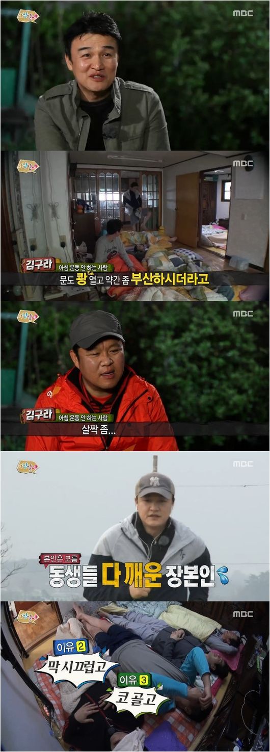 김구라는 9일 방송된 MBC 예능프로그램 ‘사남일녀’에서 박중훈에 오전 6시에 일어나 아침부터 달리기를 하자 “운동하는 건 상관 없지만 일어나면서 모두를 깨운다”고 불만을 말했다.