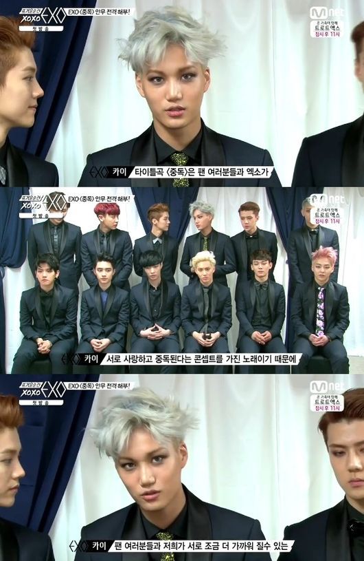 이날 카이는 신곡 '중독'에 대해 "팬들과 엑소가 사랑하고 중독됐다는 것을 표현하는 안무다. 팬들과 조금 더 가까워질 수 있는 안무라고 생각한다"고 말했다.