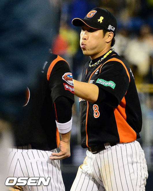 경기종료 후, 승리한 롯데 전준우가 동료와 하이파이브를 나누고 있다. /ouxou@osen.co.kr