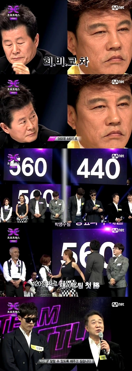 '트로트엑스' 팀 배틀 결과에 트로트계의 양대 산맥 태진아와 설운도의 희비가 엇갈렸다.