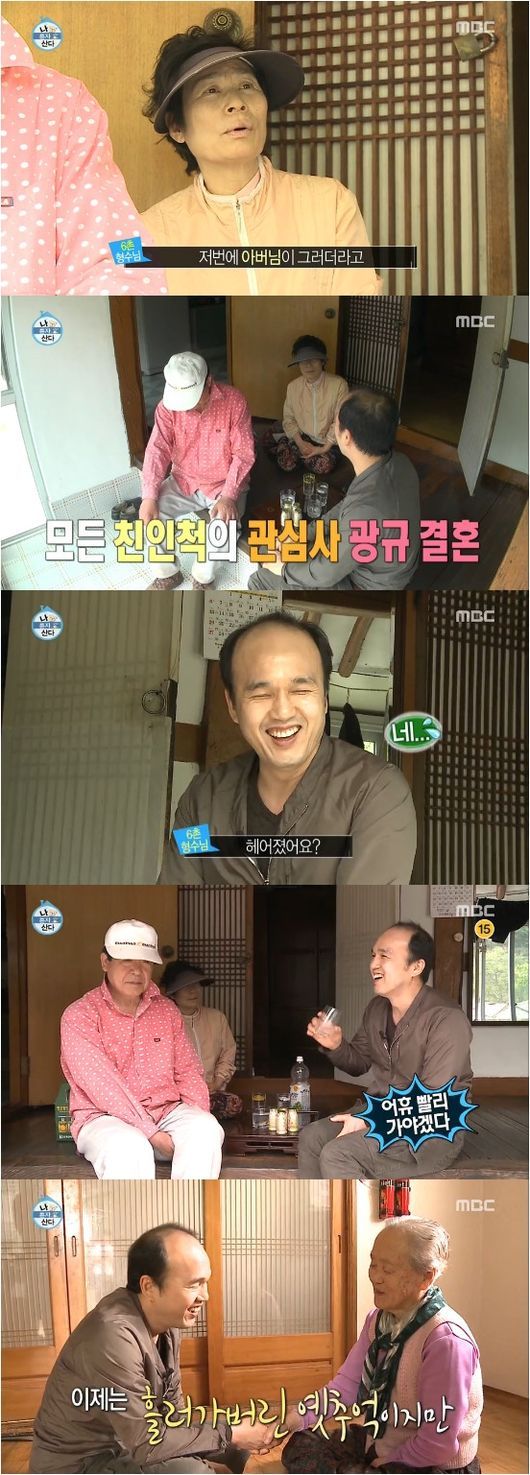 그는 이날 아버지 사촌 가족들을 만났다. 6촌 형수는 “결혼할 여자 있다고 들었다”고 말을 꺼냈다. 김광규는 “3년 전이다. 헤어졌다”고 당황했다.