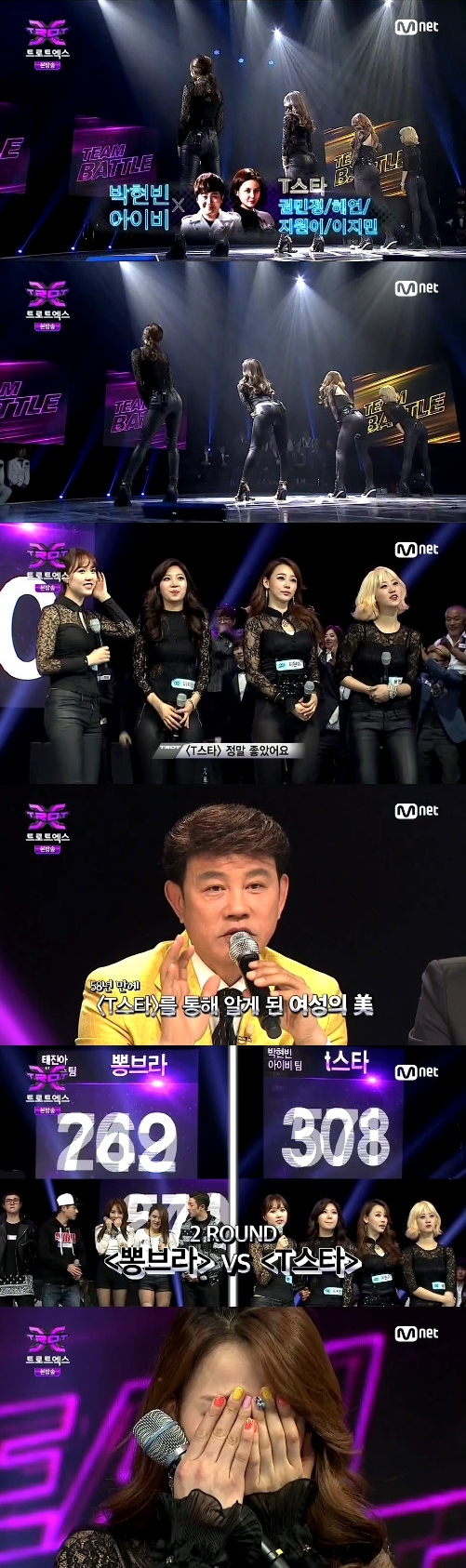 하지만 T스타는 섹시한 분위기의 무대로 호평을 받았음에도 불구, 뽕브라 (숙행, 장원기, 최진아,크리스피크런치) 팀에게 패했다. 결국 멤버들은 맏언니 지원이를 다음 라운드 진출자로 추천하며 아쉽게 무대에서 내려왔다.