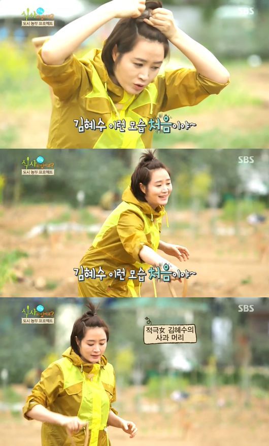 김혜수와 이영자, 임지호는 돌을 골라내는 등 직접 밭을 갈았다. 이에 앞서 김혜수는 긴 앞머리를 묶고 본격적으로 밭갈이에 나섰다.
