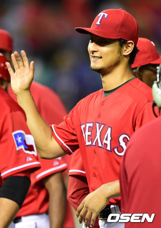 경기 종료 후 다르빗슈가 동료들과 하이파이브를 하고 있다. / baik@osen.co.kr