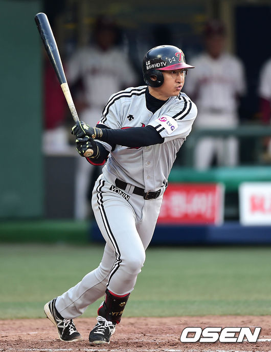 5회초 2사 3루에서 LG 박용택이 중전 적시타를 치고 있다.