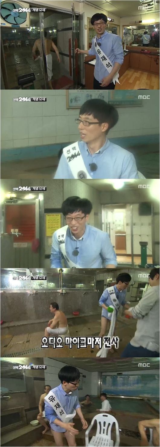 그는 양복 셔츠에 속옷만 입고 적극적으로 때밀이를 했다. 시청자 친화형 유세는 평소 친근하고 배려 있는 진행의 유재석다운 행보였다.