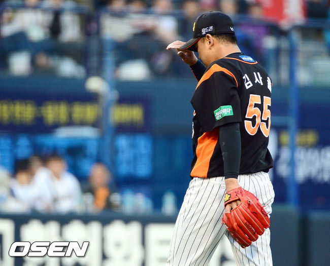 10일 오후 경남 마산구장에서 열린 '2014 한국야쿠르트 세븐 프로야구' NC 다이노스와 롯데 자이언츠의 경기, 4회말 역전을 허용한 롯데 선발 김사율이 덕아웃으로 발걸음을 옮기고 있다.