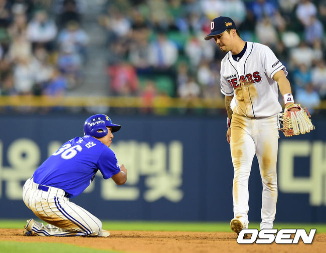 7회초 1사 1루에서 삼성 이승엽이 김태완의 3루땅볼에 두산 오재원에 포스아웃 당한뒤 아쉬운 미소를 짓고 있다.