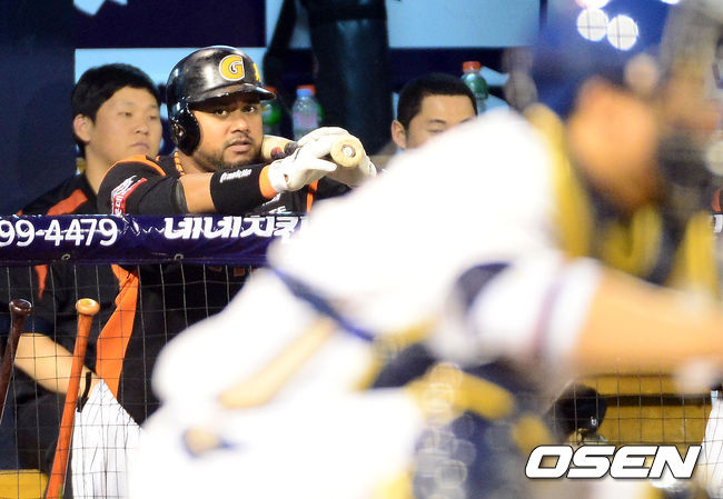 10일 오후 경남 마산구장에서 열린 '2014 한국야쿠르트 세븐 프로야구' NC 다이노스와 롯데 자이언츠의 경기, 8회초 2사 2루 타석 최준석 상황을 덕아웃에서 히메네스가 바라보고 있다.