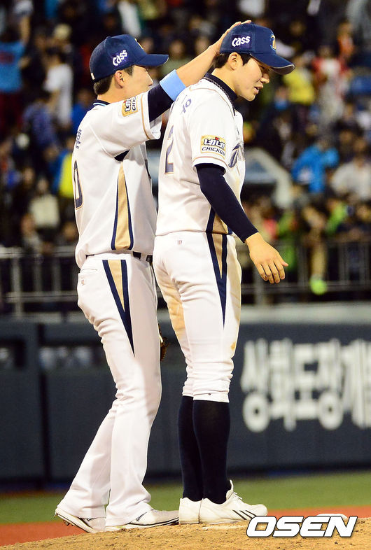 경기종료 후, 승리한 NC 지석훈이 박민우 머리를 쓰다듬어 주고 있다. /ouxou@osen.co.kr