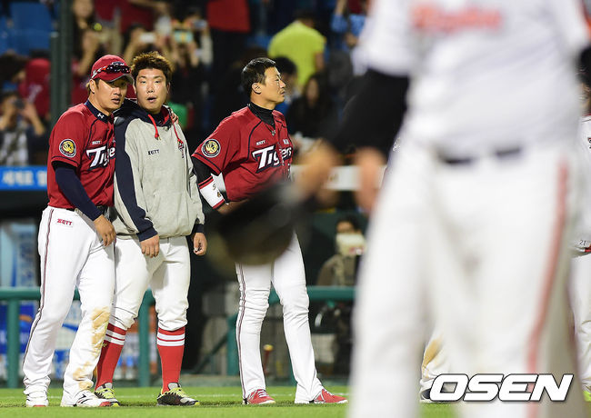 경기 종료 직후 결승 스리런을 터트린 나지완이 김주찬을 비롯한 동료들과 인사를 나누고 있다./dreamer@osen.co.kr